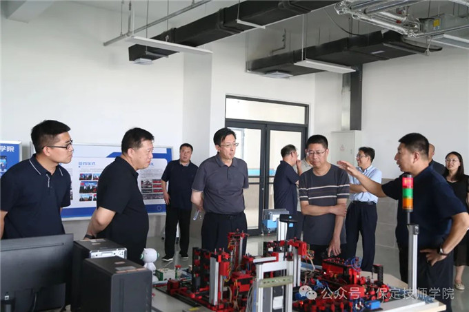 徐主任一行首先到中德(保定)工业4.0智能制造公共实训基地参观,实地观摩了数控加工、工业机器人等现代化实训设备。